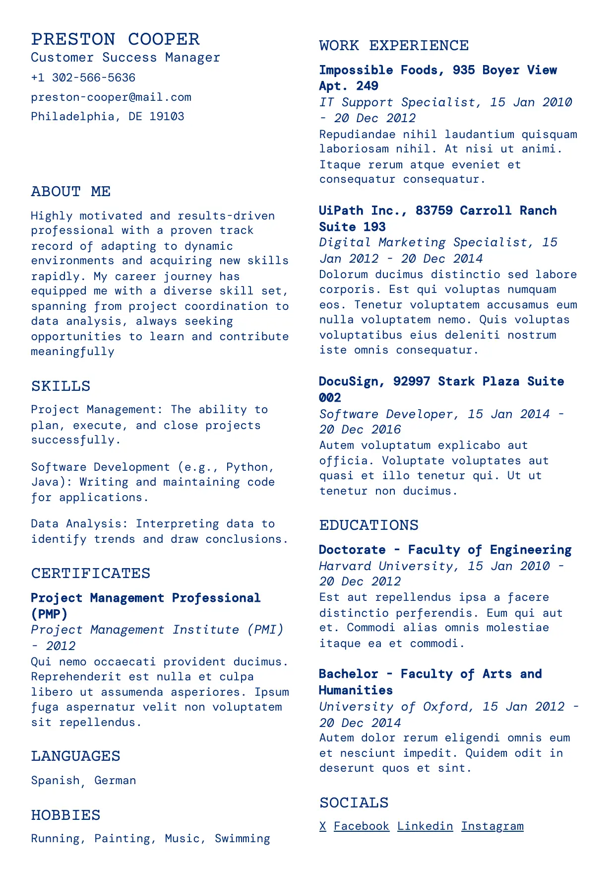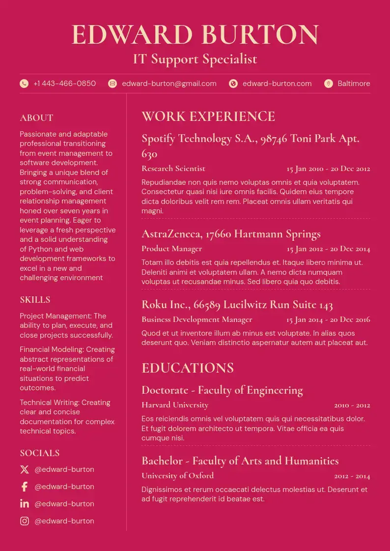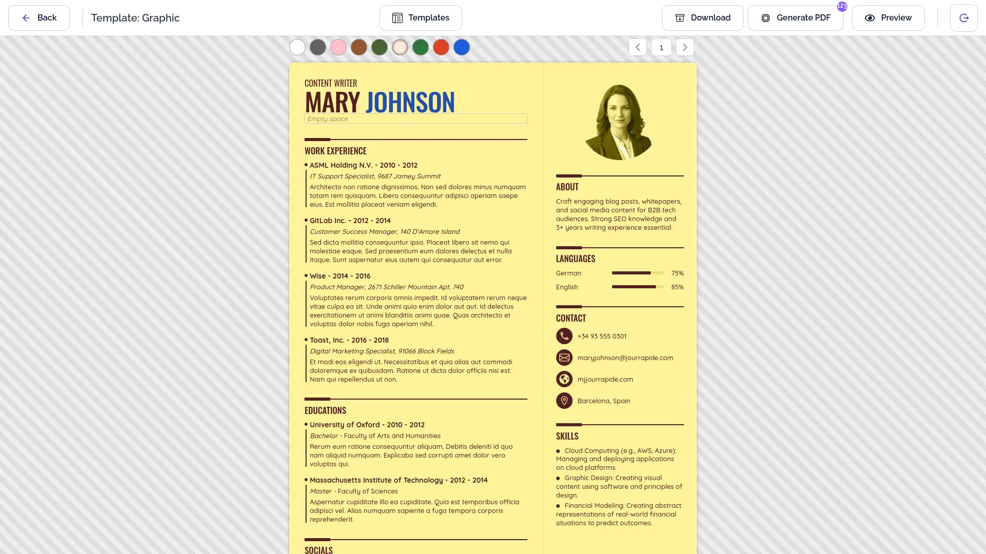 Don't waste time creating a resume in Word, create your resume using our application and save time.